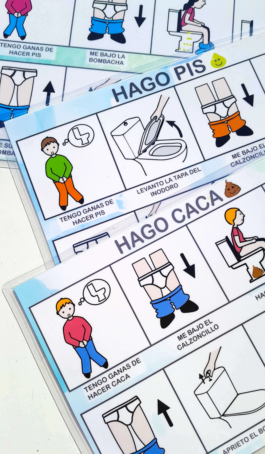 Facilitan la comprensión de la secuencia de ir al baño para personas que tienen dificultades con el lenguaje verbal, como niños pequeños, personas con autismo, o aquellos con discapacidades cognitivas.