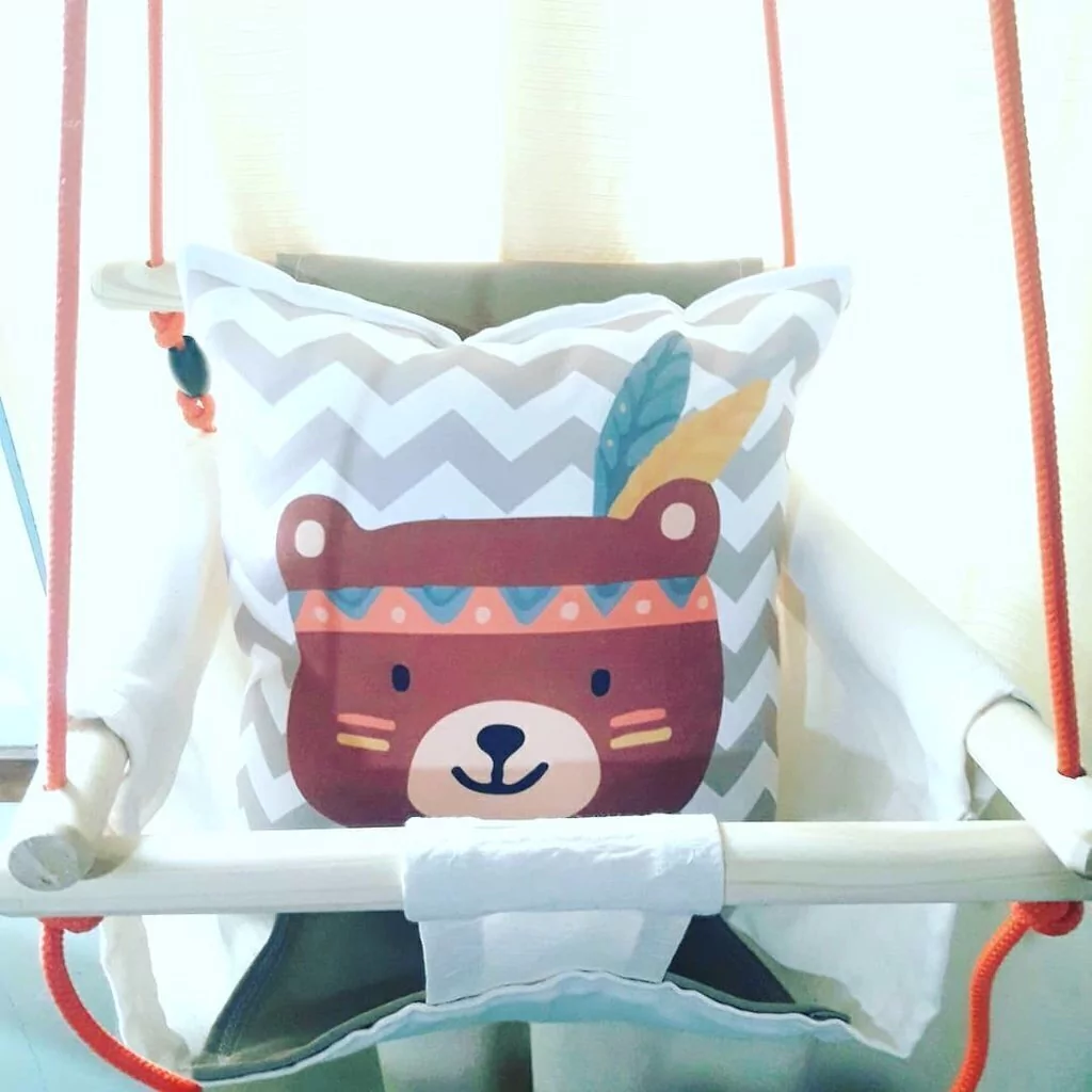Hamaca para bebé, fabricada con ejes de madera maciza y cuerpo de tela.