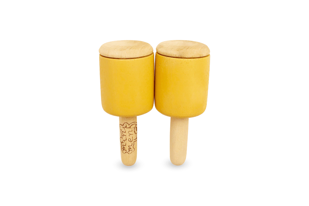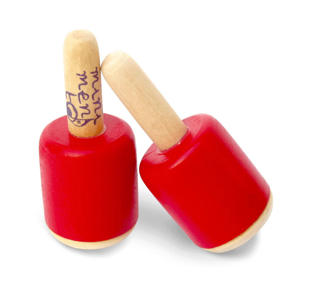 Dos pequeños vasitos de madera con mango, que emiten un dulce y suave sonido.